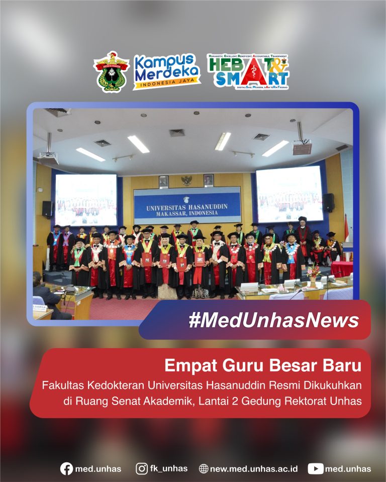 Universitas Hasanuddin kembali menegaskan komitmennya dalam meningkatkan kualitas pendidikan dengan mengukuhkan empat guru besar dari Fakultas Kedokteran. Acara pengukuhan berlangsung di Ruang Senat Akademik, Lantai 2 Gedung Rektorat Unhas.