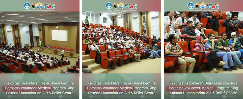 Makassar, 24 Desember 2025 — Fakultas Kedokteran Universitas Hasanuddin menyelenggarakan kegiatan Guest Lecture bersama Volunteer Medical Program King Salman Humanitarian Aid & Relief Centre, Kingdom of Saudi Arabia. Kegiatan ini berlangsung di LT 5 Aula Syamsuddin Dg Mangawing, Fakultas Kedokteran Universitas Hasanuddin.